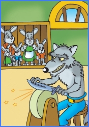 Жила в одному лісі родина: мама-Зайчиха, тато-Заєць і дітки-зайчатка – маленькі хлопчики й дівчатка. Сім’я була дуже дружня та роботяща. Щоранку татко з синочками вирушали на пошуки їжі, а мама з донечками поралися в хатинці. І все було б добре, якби не з’явився в тому лісі злий Вовк із хитрою Лисицею. Помітили чепурненьку хатку, побачили, хто в ній мешкає, і почали розробляти план, як непомітно впіймати здобич. Руда була винахідливою, тому запропонувала: – Ходімо в поле, назбираємо капусти та моркви, потім залишимо біля домівки вухатих і почекаємо, доки вони кинуться до нашого «подаруночка»! А тоді, сірий, хапаймо простаків, скидаймо в мішок і мерщій додому! – Ґеніально, люба подружко, – промовив, облизуючись, голодний Вовк. Сказано – зроблено. На світанку принесли заячі ласощі, розклали під віконечком, а самі заховалися в кущах. Чекати довелося недовго… Куцохвості прокинулися й відчули знайомий аромат. – Так смачно пахне! – з насолодою вдихав повітря Заєць. – Сама не збагну, – здивувалася дружина. Малі кинулися до віконця й побачили там справжній скарб! Чого тільки не було: й капуста, й морква, й соковита конюшина… – Татку! Матусю! Дивіться, які ласощі розкидані біля нашого будинку. Мерщій надвір! А одне зайченя було дуже кмітливим і миттю збагнуло, що тут пастка! Пухнастик спробував переконати рідних, але де там! Ніхто навіть слухати не захотів. Усі вибігли на подвір’я і кинулися до їжі. Лисиця з Вовком на це й розраховували. Переловили довговухих – і бувай! Чує зайча, що якось тихо стало за вікном, немає радісних вигуків і метушні. Вийшов маленький на ґанок – нікого немає! Заплакав бідолашний: – Де мої рідненькі? Цієї миті підлетіла Сорока-білобока, що, як завжди, все бачила. – Послухай мене, Вуханчику, – заскрекотала пташка. – Сльозами горю не допоможеш! Вовку та Лисиці поталанило зловити твоїх родичів. Тепер поміркуй, як злодіїв обвести навколо пальця. Я ж допоможу їх знайти. А тим часом хижаки готувалися до ситного обіду. Руда розпалювала піч, а сірий гострив ножі. Злодюги ковтали слинку, уявляючи, якої смакоти зараз наїдяться, аж раптом почули, що у віконце хтось стукає. – Поглянь-но, кумасю, хто там завітав. – Не повіриш, сірий, – радісно повідомила Лиска. – До нас прийшло ще одне апетитне зайченятко! – То чого ж стоїш?! Запроси гостя до хати! – зловтішно зареготав зубатий. Хижаки вибігли надвір, навіть дверей не зачинили. А хитре зайчисько тільки на це й розраховувало! Як дало дьору, а Вовк із Лисицею кинулися наздоганяти. Та поки вони петляли лісом, зайці спокійно повернулися додому. Невдовзі й малий розумник прибіг. Хоч і втомився сміливець, одначе почувався справжнім героєм! Ото були веселощі! Навіть Сорока-білобока жваво витанцьовувала гопака на гілці. А голодні й розлючені Лисиця та Вовк залишилися ні з чим.