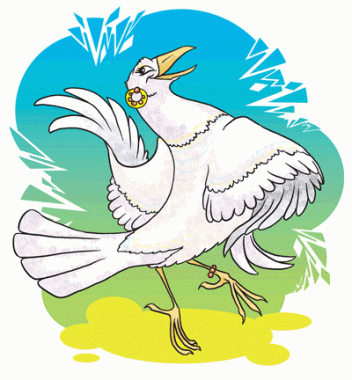 Квапливо витерши крилом замурзаного рота, дивачка кинулася вбиратися в білосніжний одяг.