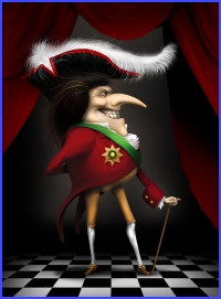 Здавалося, навколо ялинки можна побачити все, що тільки забажаєш! Аж ось Марі помітила незграбного чоловічка в дерев’яному плащі. У нього був задовгий тулуб, коротенькі ніжки, велика голова та доброзичливе обличчя. Цей маленький чепурун одразу сподобався дівчинці.