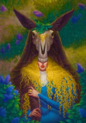 Почувши стукіт у двері, дівчина миттю накинула зверху сукні ослячу шкуру й відчинила.