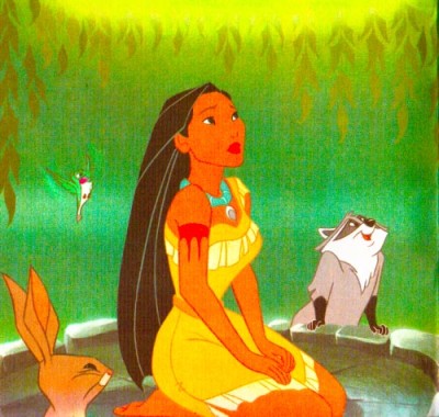 Покахонтас дуже любила природу, їй подобалося гуляти лісом разом зі своїми маленькими друзями – пташкою-колібрі Флітом та єнотом Міко.