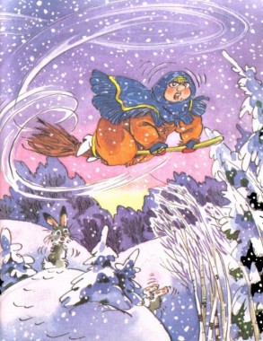Але найприкріше здалося зимі, що малі діти – й ті її не бояться! Катаються собі на ковзанах і на полозках, у сніжки грають, баб ліплять, гори зводять, водою поливають і ще мороз кличуть: «Прийди допоможи!» Щипне зима зі злості одного хлопчика за вухо, іншого за ніс, щічки побіліють, а малий схопить снігу, почне терти – й розгориться в нього обличчя, як вогонь.
