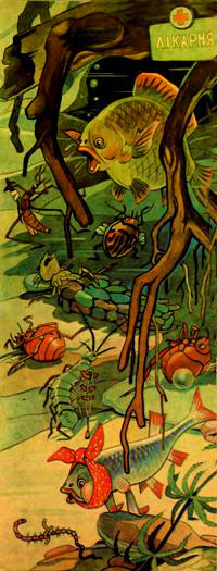 «Еге, тут плавати небезпечно! – занепала духом Босмінка. – Так і пильнуй, щоб хтось не схопив! І писнути не встигнеш...