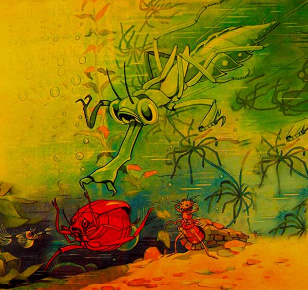 Леонід Шиян. Пригоди Босмінки. Ілюстрована книга. Малюнки Віктора та Кіри Григор’євих. (читати, завантажити, слухати)Проте Босмінка не розгубилася. Орудуючи хоботком, вона стала продиратися вперед. Слизькі, холодні водорості обплутали її від ніг до голови. На мить бідоласі здалося, що вона вже не вибереться звідси. Аж ось, нарешті, протислася крізь отвір і... полетіла шкереберть.