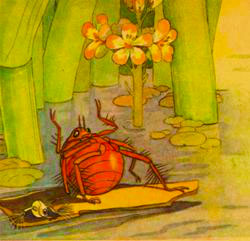 Їм часто попадалися зграйки сріблястих рибчинок. Поспішаючи кудись у своїх справах, заклопотано проплив жук Плавунець. Очевидно, десь недалеко мала бути річка. Босмінка від нетерплячки засовалася на хвості. Скоріше б!..