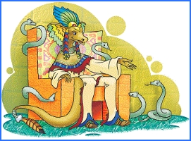 Побачив юнак, що там у розкішному кріслі сидить зміїний цар, а гадюк скрізь – аж кишить. Відчайдух сміливо зробив крок, але сходинка стала вищою. Ступив іще раз – знову виросла. Коли втретє підняв ногу, підступна немов підстрибнула.