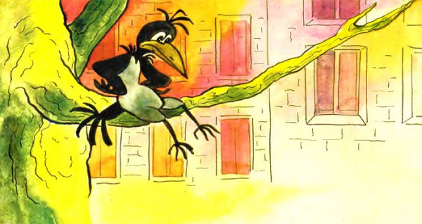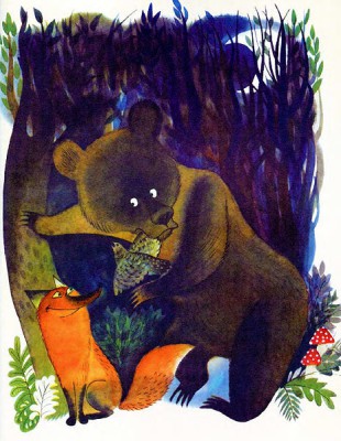 Лисичка – то хитра штука. Іде вона раз біля куща, аж бачить – сидить горобець на гілці. Вона стала під кущем та й каже: