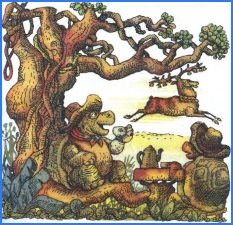 Побачивши її, олень здригнувся од несподіванки і рвонув чимдуж, щоб таки перегнати черепаху.