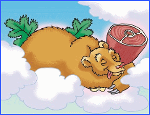 Стомився ведмідь після марних пошуків поживи ліг та й заснув. І наснився йому гарний шматок м’яса. Смакоту вдалося навіть скуштувати. Прокинувся бурий і подався на пошуки того, що наснилося.