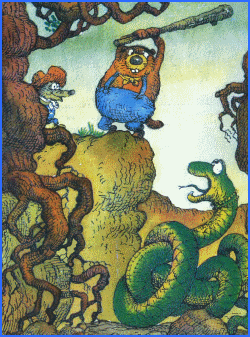 – Залазь у яму, маха,– каже миша. – Я хочу побачити, як усе було насправді.