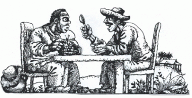 Галісієць та конго якось пішли до харчівні попоїсти. Обидва дуже зголодніли і, хоч грошей у них було мало, вирішили влаштувати на той дріб’язок трапезу. Коли їм подали їжу, тарілка у конго виявилася повнішою. Галісієць, який сидів навпроти, помітив це і повернув круглий стіл так, що конгова тарілка опинилася перед ним. А тоді й каже до конго, який був дуже здивований його вчинком: