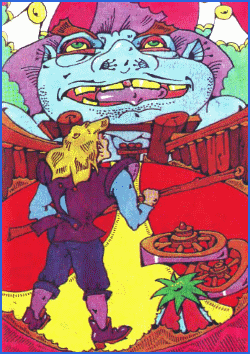 – Хто ти такий, жалюгідна малявко? – заревів Денбрас, побачивши нарешті Тома. – Як насмілився з'явитися тут зі своїм скрипучим возом? Ага, то це пиво? Ти привіз його мені? От не чекав!