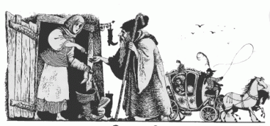 Подорожній смикнув за дзвоник, потім тихенько зайшов до майстерні й спитав, чи нема тут для нього якої роботи. Але майстра не було вдома, а жінка його, хоч і шкода їй стало бездомного, порадила йому пошукати роботи десь-інде, бо чоловік її дуже злий і в нього ще нікому не жилося добре.