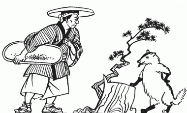 – От, голубе, ти й попався! – мовив дід і, спутавши танукі мотузкою, поніс його на спині додому.
