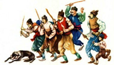 – Ой, вовчику, ой, кумцю, побили й мене, кості мені поламали, мозок випустили. Бачиш – уся голова біла. Не знаю, як до хати дійти, щоб хоч коло дітей померти та щоб не рознесли орли й ворони кісточок моїх.