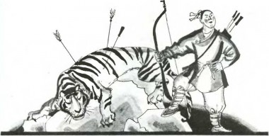 – Найняв собі в охоронці «героя, що вбив тигра»! – похвалявся перед своїми приятелями багатій.– Не лише стрілець вправний, а й силу має неабияку. Навіть не забажав помічників собі брати. Від додаткової зброї також відмовився. Он який воїн!