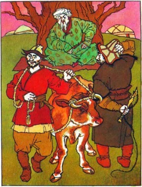 – Бачиш, пастуше, тепер і в мене вже є телятко. Воно ще маленьке, то треба його на пасовище винести і пустити, щоб паслось. А плата з мене хай буде, як з інших,– каже Алдар.