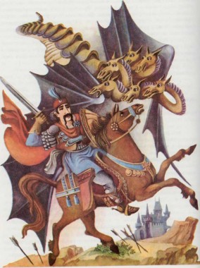 А інші брати-змії підбігли до семиголового страховиська, і не встиг він до землі доторкнутися, як вони вже повідрубували йому всі голови.