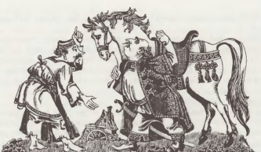 – Та що ти, жінко! – вигукнув ага.– Коли це бувало, щоб хтось із того світу повертався! Швидше давай мені шаблю та виводь коня із стайні, я його наздожену та відберу гроші назад.