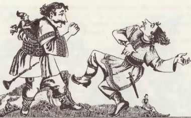 Слово за слово та й завелися. Розбійник став погрожувати здоровилові: не таких, мовляв, ще бачив. Тоді здоровило щиглем стукнув розбійника, і той покотився по землі – не стало й видно його.