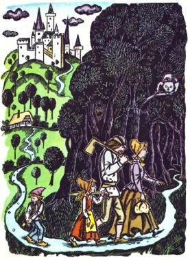 – Знаєш що, чоловіче,– відповіла жінка.– Заведімо завтра вранці дітей у найгустіші хащі. Там розкладемо їм вогнище, дамо по скибці хліба, самі підемо на роботу. Додому вони не втраплять, і так ми їх позбудемося.