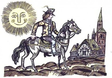 Трохи перегодом йому здалося, що він їде надто помалу, треба їхати швидко. Він прицмокнув язиком, гукнув: «Вйо, вйо!» – і кінь пішов учвал. Але Ганс і незчувся, як полетів шкереберть із сідла в придорожній рівчак. А кінь би втік, якби його не затримав один селянин, що йшов дорогою і гнав корову.