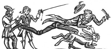 Тут саме почав накрапати дощ. Фехтувальний майстер вихопив шпагу і почав вимахувати нею над головою, та так швидко, що жодна краплина не впала на нього.