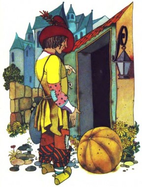 Невдовзі Ніколя Дортен вийшов на ринковий майдан. І ось в одного торговця городиною він помітив щось велике, жовте і кругле, мов колесо від воза. То був гарбуз.