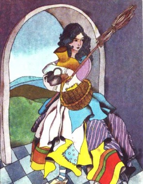 Безсердечна була дочка, зате напрочуд вродлива: великі чорні очі, високе чоло, рівний тонкий ніс, чорні шовкові коси – жодна дівчина у всій околиці не могла зрівнятися з нею.