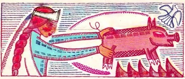 – Лізь мені на рога, дістанешся неба й запитаєш у сонцевої та місяцевої матері. Вона знає, куди полетів голуб. Тільки запитай іще, чи можна мені якось позбутися моїх рогів.