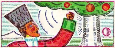 Ідуть та й ідуть, уже й рік минув. Аж прийшли край синього моря, при березі яблуня росте і яблук рясно-рясно.