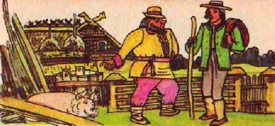 Так нахваляючись, старий вирушив у дорогу. Наймит одімкнув комору, зняв ковбасу й нагодував нею свиню. Потім одімкнув амбар, набрав у засіку вівса й насипав коневі. Раптом кінь заговорив до нього людським голосом: