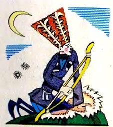Натяг Алі тятиву та й випустив стрілу – простісінько в середину хмарини,– і стала вона конем рудої масті. «Еге, й ти внадився по нашу сіль!» – вигукнув Алі, скочив верхи на коня й обома руками міцно вчепився у гриву. Кінь помчав- полетів угору й вісімдесят три рази облетів небо з краю в край.